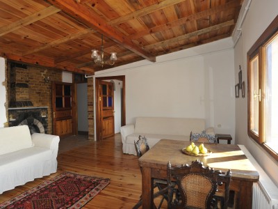 Das Wohnzimmer mit dem offenen Kamin, Sitzgelegenheiten und dem angeschlossenen Balkon mit Blick über das Goldene Horn und die historische Halbinsel laden dazu ein, die Erlebnisse des Tages noch einmal in Ruhe Revue passieren zu lassen. Neben der Wohnung befindet sich eine gemeinsame Dachterrasse des Gebäudes, von welcher man einen wunderschönen Blick auf den Galata Turm und den Topkapi Palast hat.