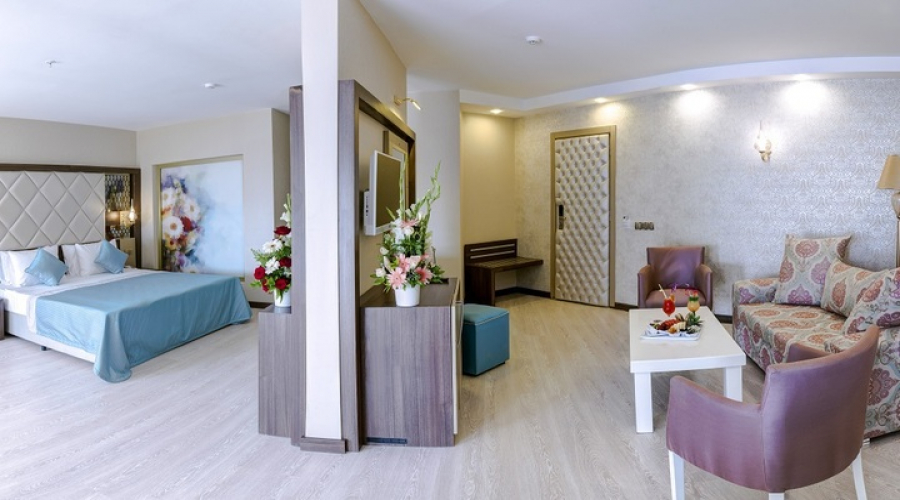 %100 deniz gören odamızda; Ferahlık, rahatlık ve sıcak bir ortamda konaklama arayanları Premium Suit'lerde kusursuz bir keyif bekliyor. Oturma odası ve yatak odasıyla rahat bir yaşam alanı sunan suitimizde, her türlü konfor düşünülmüş durumda. İnternet bağlantısının da bulunduğu, 55 metrekare toplam alanıyla şıklığı, konforu ve lüksü tatilinizin en önemli parçası haline getiriyor.