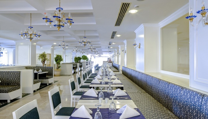 Akşam yemeklerinde hizmet veren Restoranımız, konuklarına; lezzeti, kusursuz hizmeti ve keyifli yemek saatlerini birarada sunmaktadır. Akdeniz'in zengin seçenekleri ile birbirinden taze balık ve deniz ürünleri menüsünü önünüze serecek. Balık yemenin tadına Akdeniz A’la Carte Restoran'da varacaksınız.