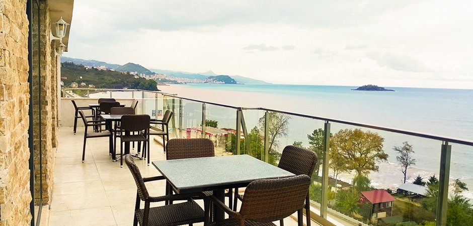Aretias Hotel, Karadeniz'in mavi sularına karşı konumlanmıştır.